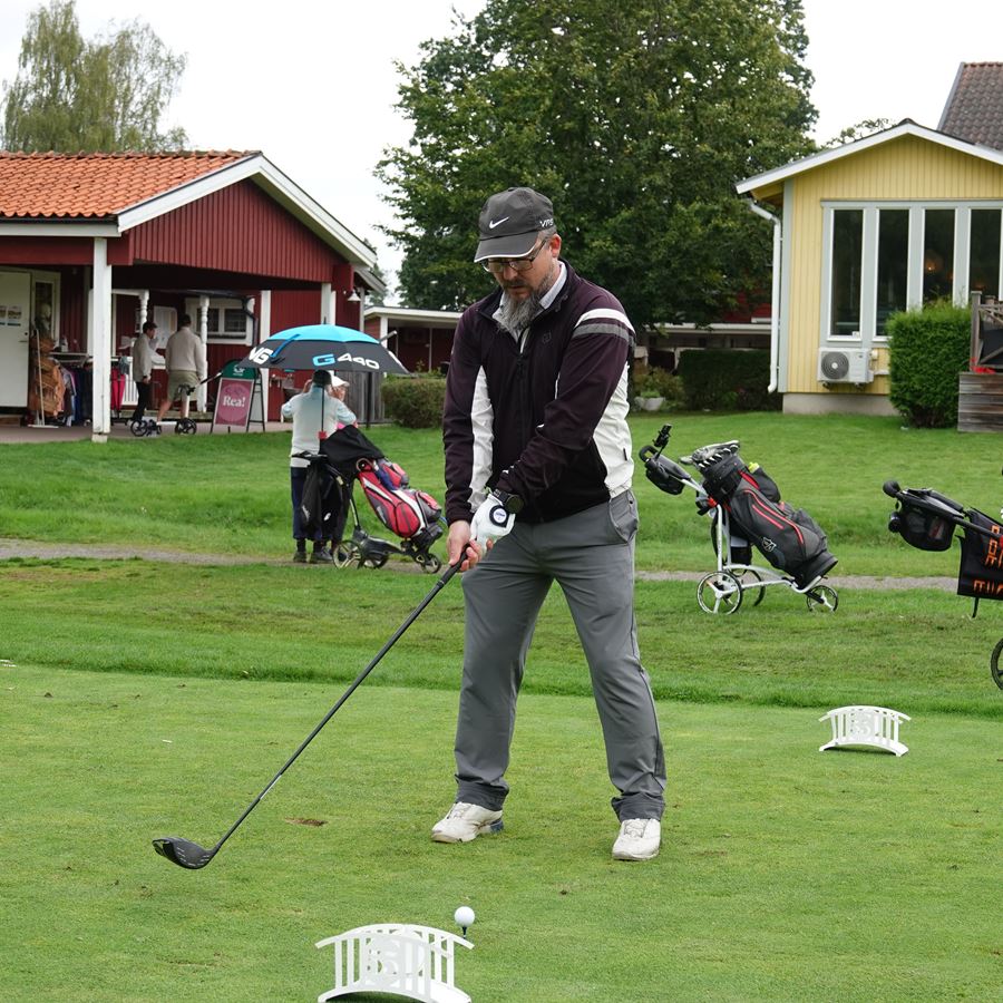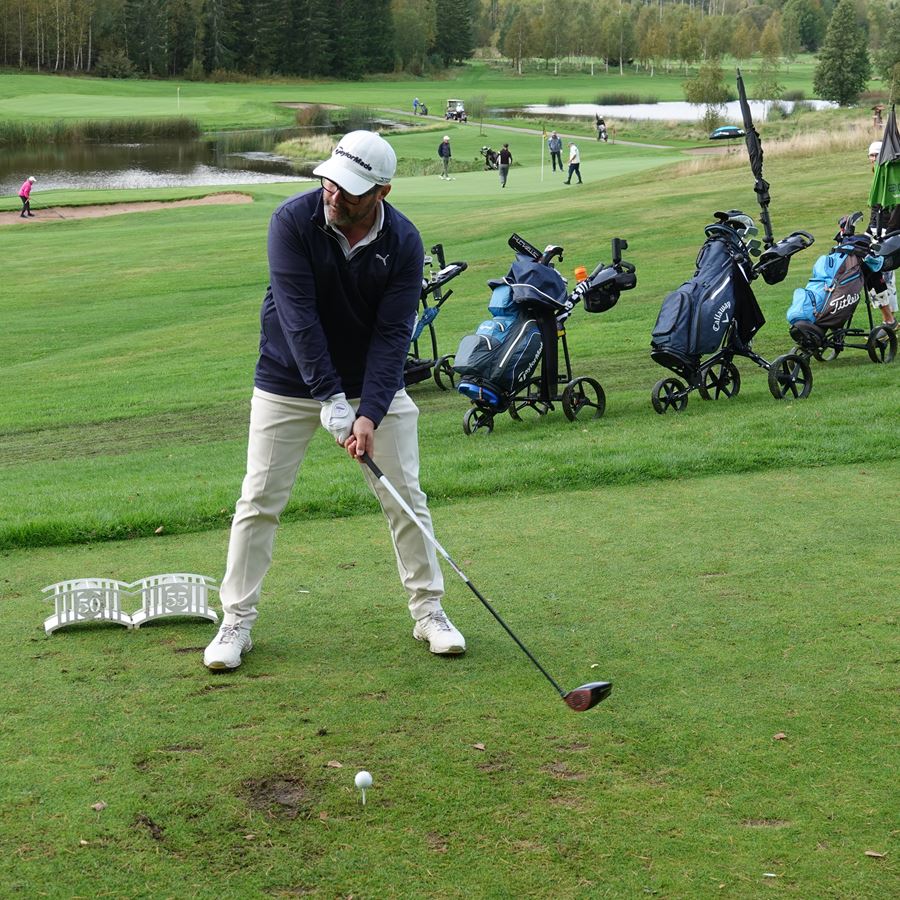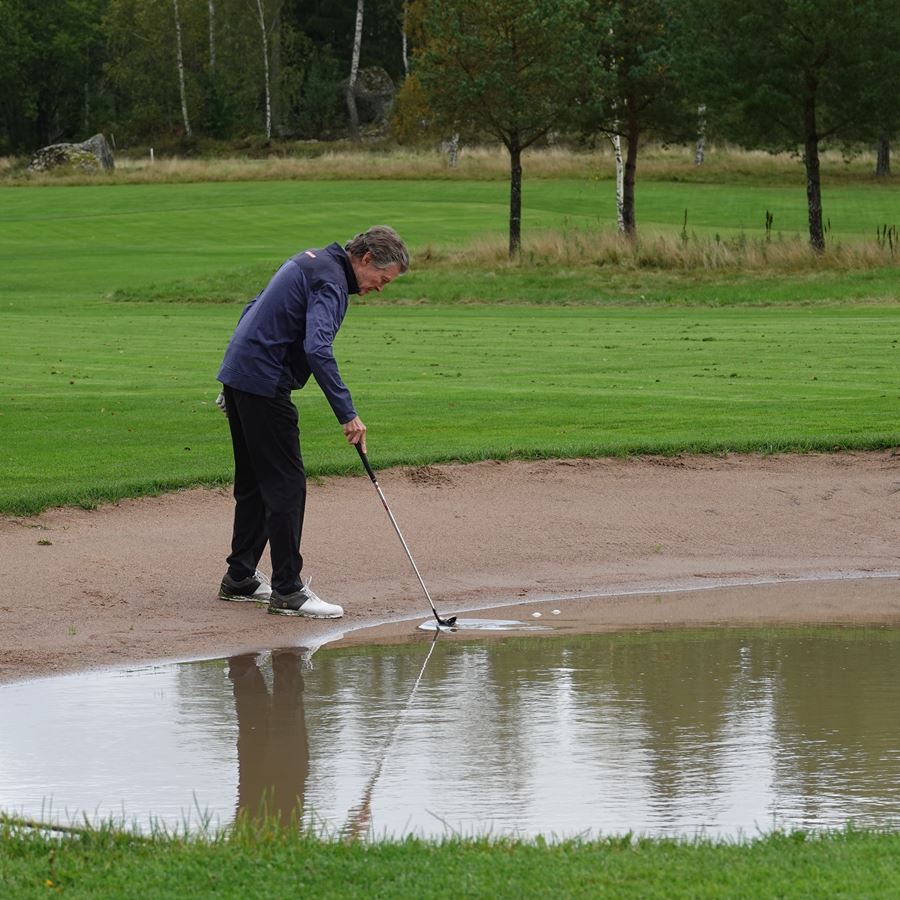 Sala Golfklubb bjöd på en väldig fin bana. Regnet slutade precis innan kanonstarten kl 10:00 och kom tillbaka först efter prisutdelningen. Visserligen var en del bunkrar skadade av nattens häftiga regnande men fairways var förvånansvärt skonade från vatten. Så det var verkligen upplagt för fina resultat.